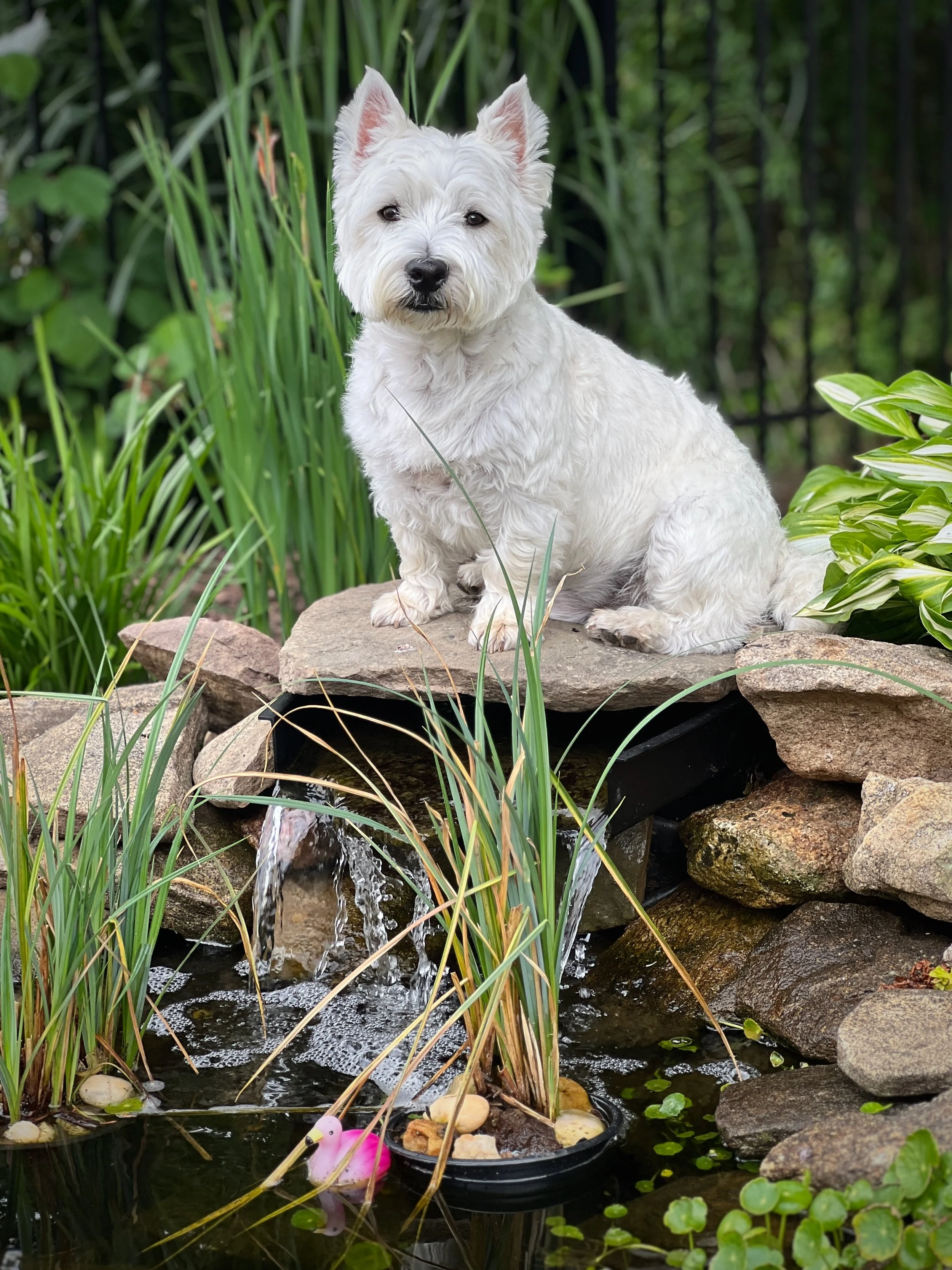 Keagan the Kind in one of his favorite spots by our pond.